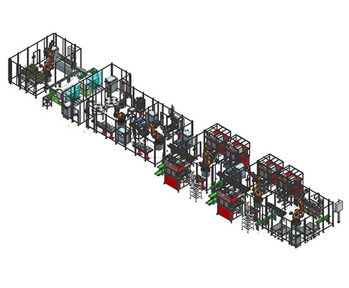 圓柱電池模組PACK自動(dòng)組裝線由上料分選機(jī)、入下支架機(jī)、電芯極性檢測、裝上支架機(jī)、鎳片裝載機(jī)、鎳片焊接機(jī)、焊點(diǎn)檢測、貼膠紙機(jī)、保護(hù)板裝載焊接機(jī),半成品檢測機(jī)、外殼裝載機(jī)、EOL測試機(jī)、貼標(biāo)機(jī)及靈活人工位組成。