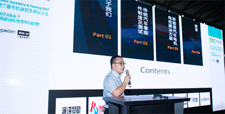 シニア主任エンジニアの厳其斌氏は高品氏を代表して「伝統(tǒng)的な自働車部品から新エネルギー自働車電機の電子制御まで——スマート組み立てとテスト技術(shù)を共有します」という基調(diào)講演を発表した。