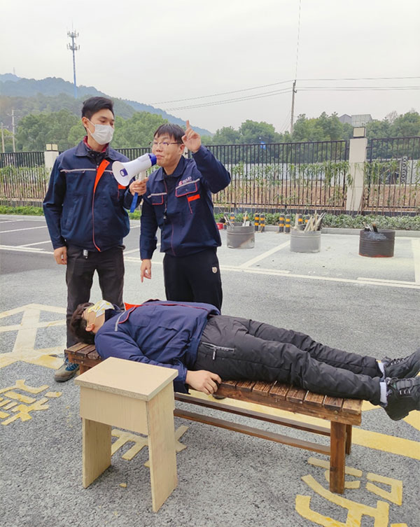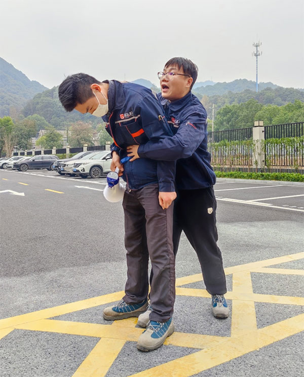 滅火器使用完畢后,安全員組織現(xiàn)場(chǎng)教學(xué)海姆立克急救法和胸外按壓、人工呼吸急救法。通過(guò)現(xiàn)場(chǎng)指導(dǎo)、錯(cuò)誤示范、正確示范等多種方式相結(jié)合的手法,使抽象的平安演練變成具體的實(shí)戰(zhàn)演習(xí),大大增強(qiáng)了全體員工的平安意識(shí)和自護(hù)自救技能。
