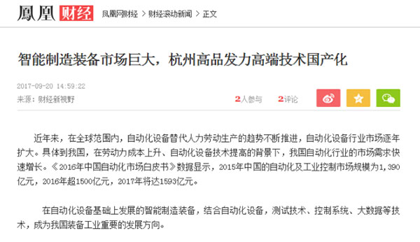近日,鳳凰、新浪、網(wǎng)易、慧聰?shù)纫槐娭髁髅襟w,紛紛報道高品子公司——蘇州高騰正式開業(yè)。憑借著行業(yè)領(lǐng)先的綜合實力和近年來的快速發(fā)展,作為本土致力于高端非標(biāo)自動化設(shè)備國產(chǎn)化的企業(yè),高品吸引了國內(nèi)媒體的關(guān)注。