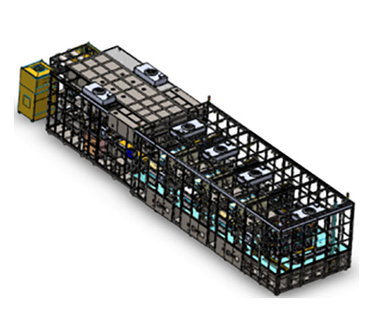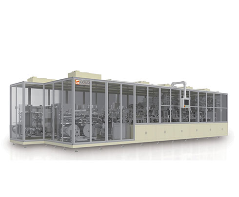 切疊一體機,主要用于完成將極耳已成型的正/負極卷料自動放卷、自動糾偏、張力控制、CCD缺陷檢測、驅(qū)動、V/R角沖切、裁斷、除鐵除塵、CCD尺寸檢測、NG剔除、真空皮帶輸送、CCD預定位、隔膜放卷、疊片臺按設定層數(shù)疊成電芯,同時可進行overhang檢測,隔膜裁斷后貼側(cè)膠、熱壓、貼二維碼膠、外觀檢測、緩存及下料測等功能。最終電芯裝載在托盤中,可對接自動物流線和MES系統(tǒng)等。